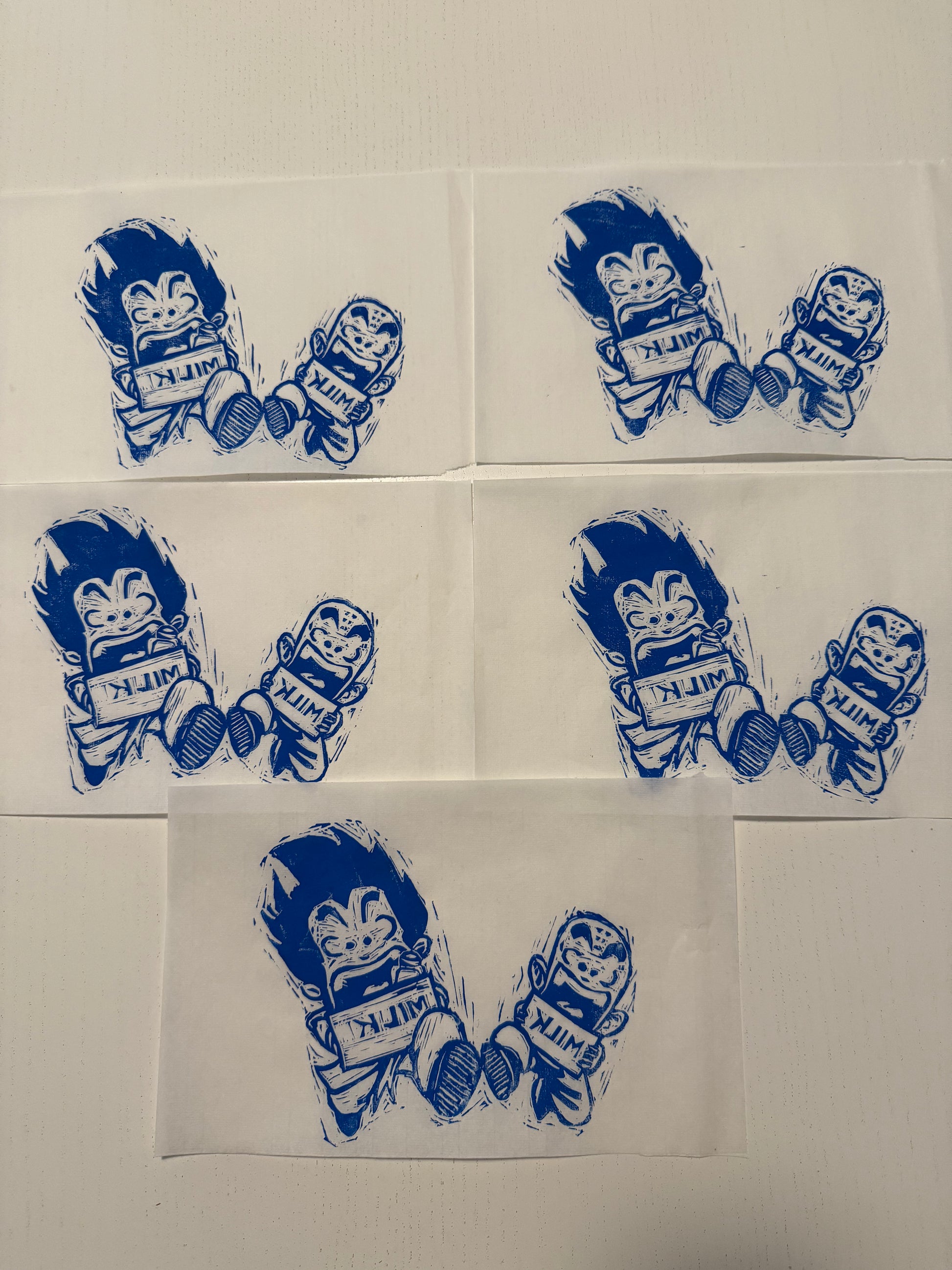 Printed in blu water-based ink on japanese rice paper