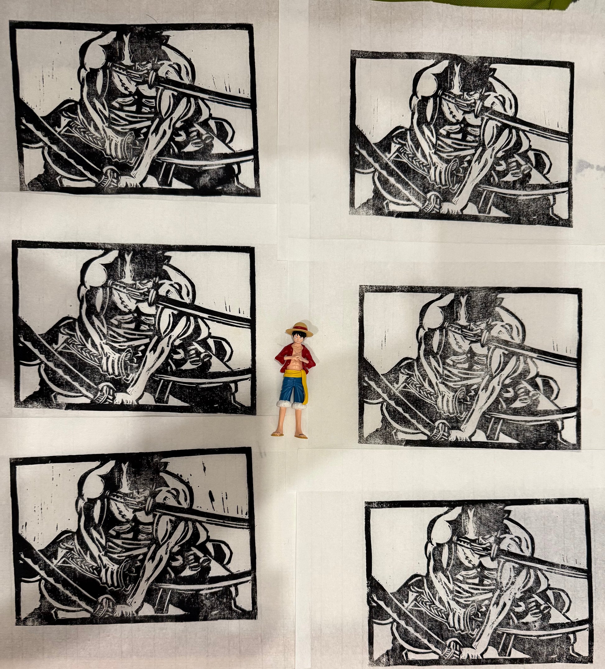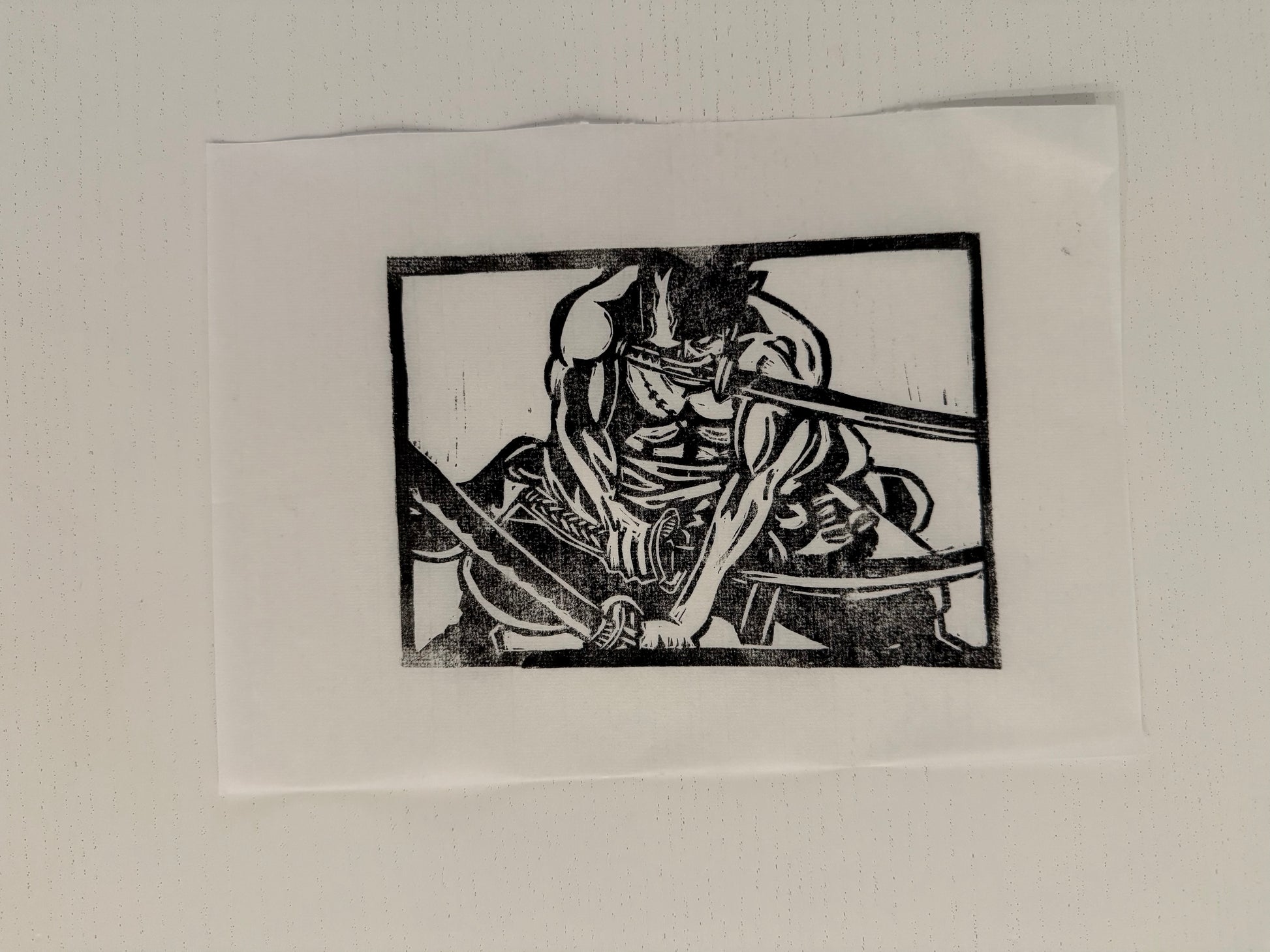 Unframed 25x19 linocut print of caracter Zoro “One Piece”